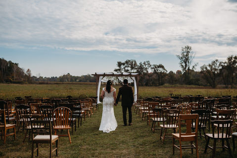 An open field set back from the road, marshland all around, and tall swaying grass sets a beautiful backdrop for your ceremony. This space has room for over 250 guests, as well as your bridal party to stand with you and help celebrate you on your big day. Mismatched chairs that match the reception area help to keep the aesthetic the same throughout the property. A permanent pergola is located at the end of the aisle for you to decorate however you would wish. Make it simple or glam it up with drapery and flowers. Your day can truly be what you make it.